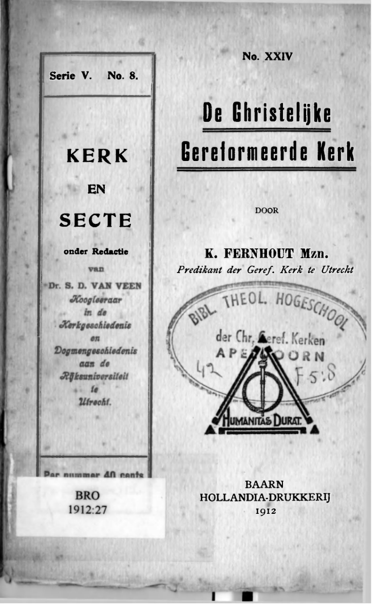 Deze collectie bevat enkele honderden theologische brochures uit de periode 1834-1943. De brochures zijn geselecteerd en beschikbaar gesteld door de bibliotheek van de Theologische Universiteit Apeldoorn.