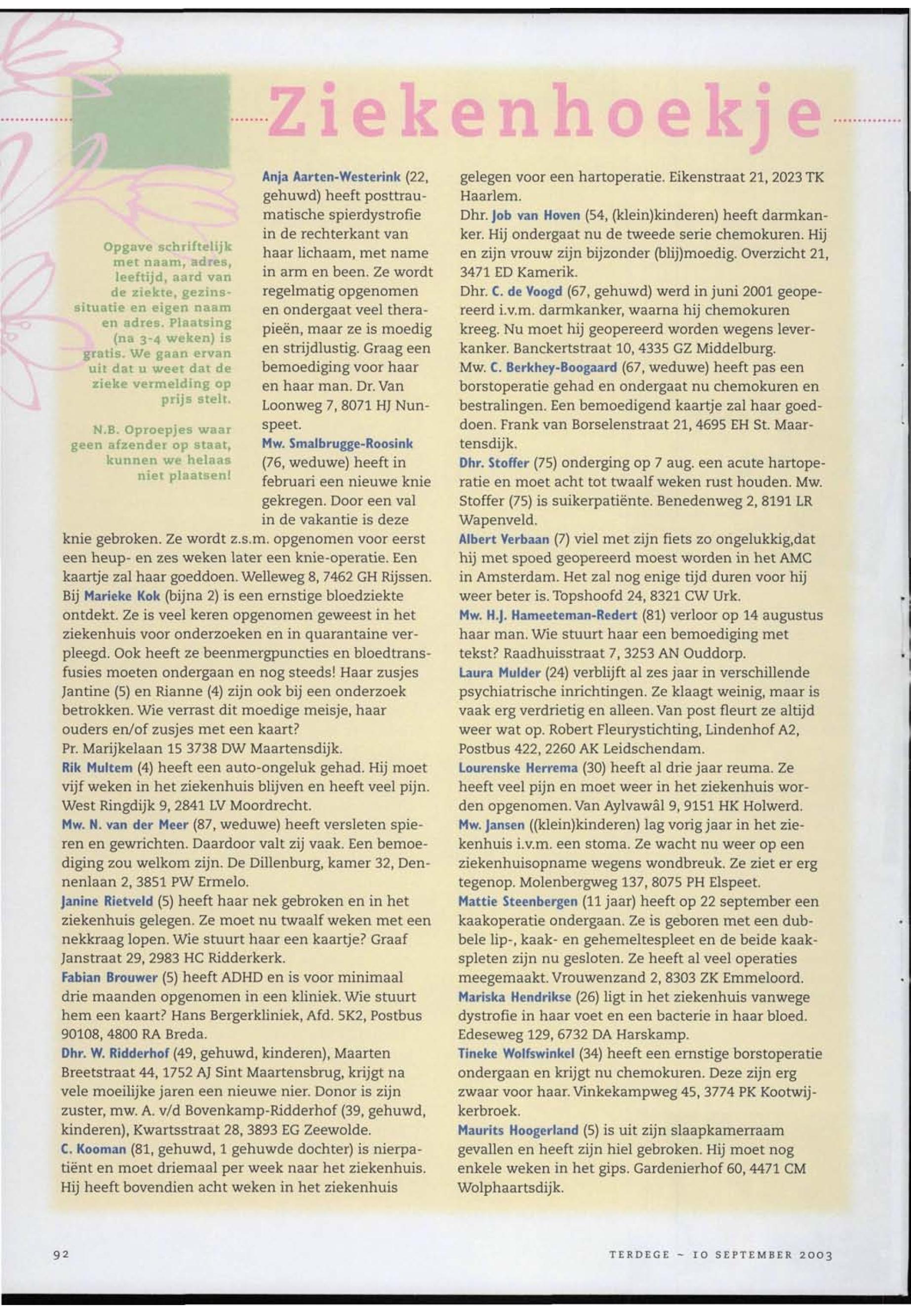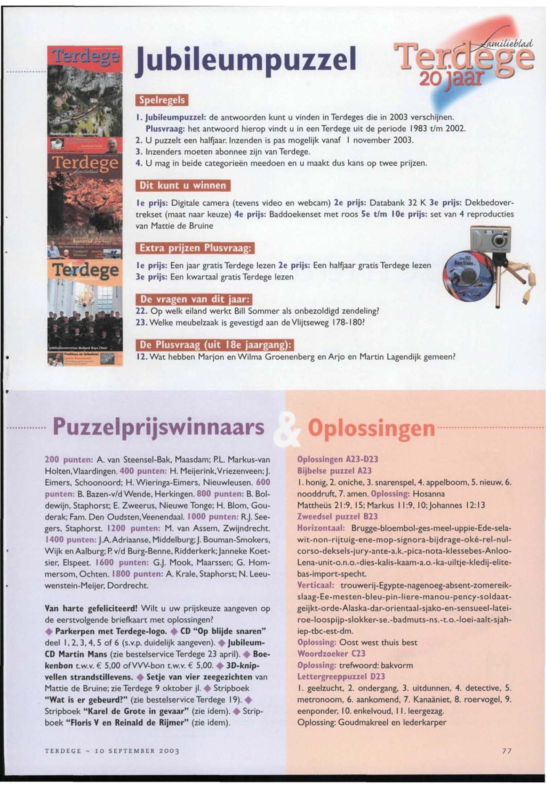 10/09/2003, Reguliere Editie
