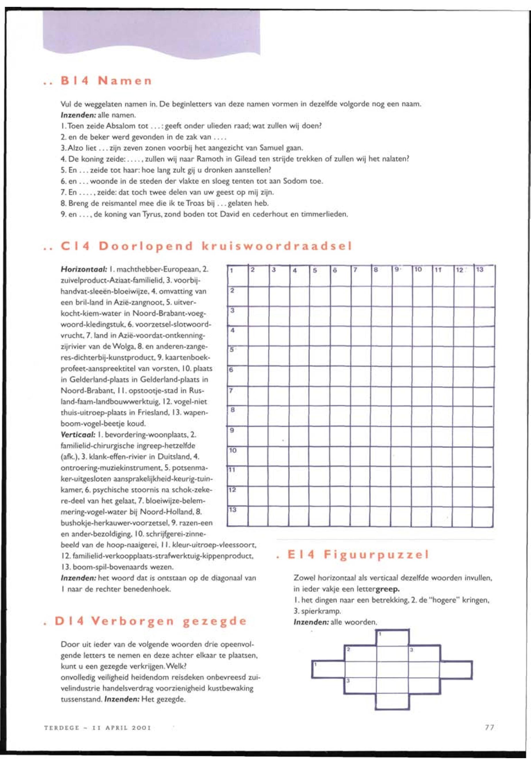 11/04/2001, Reguliere Editie