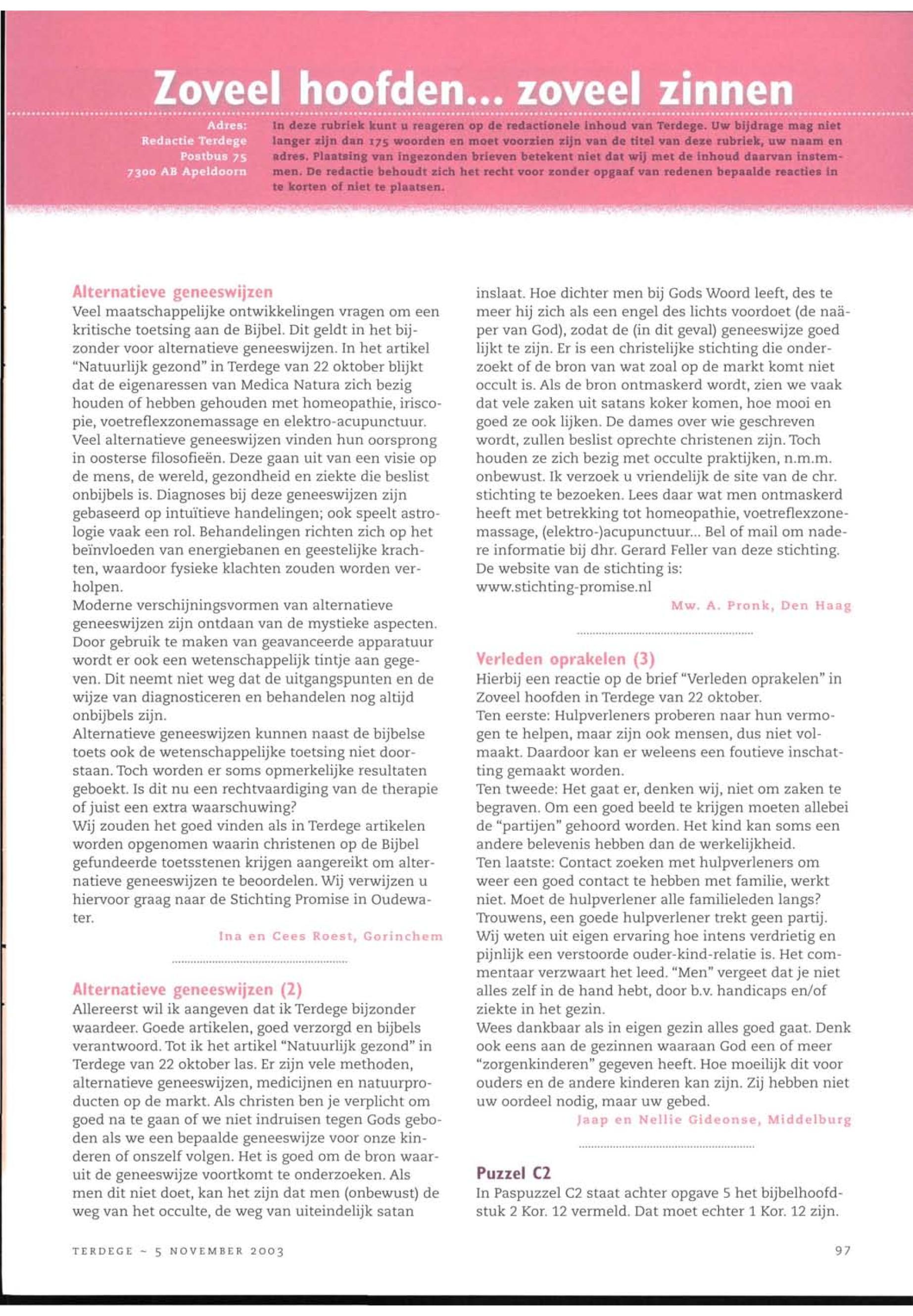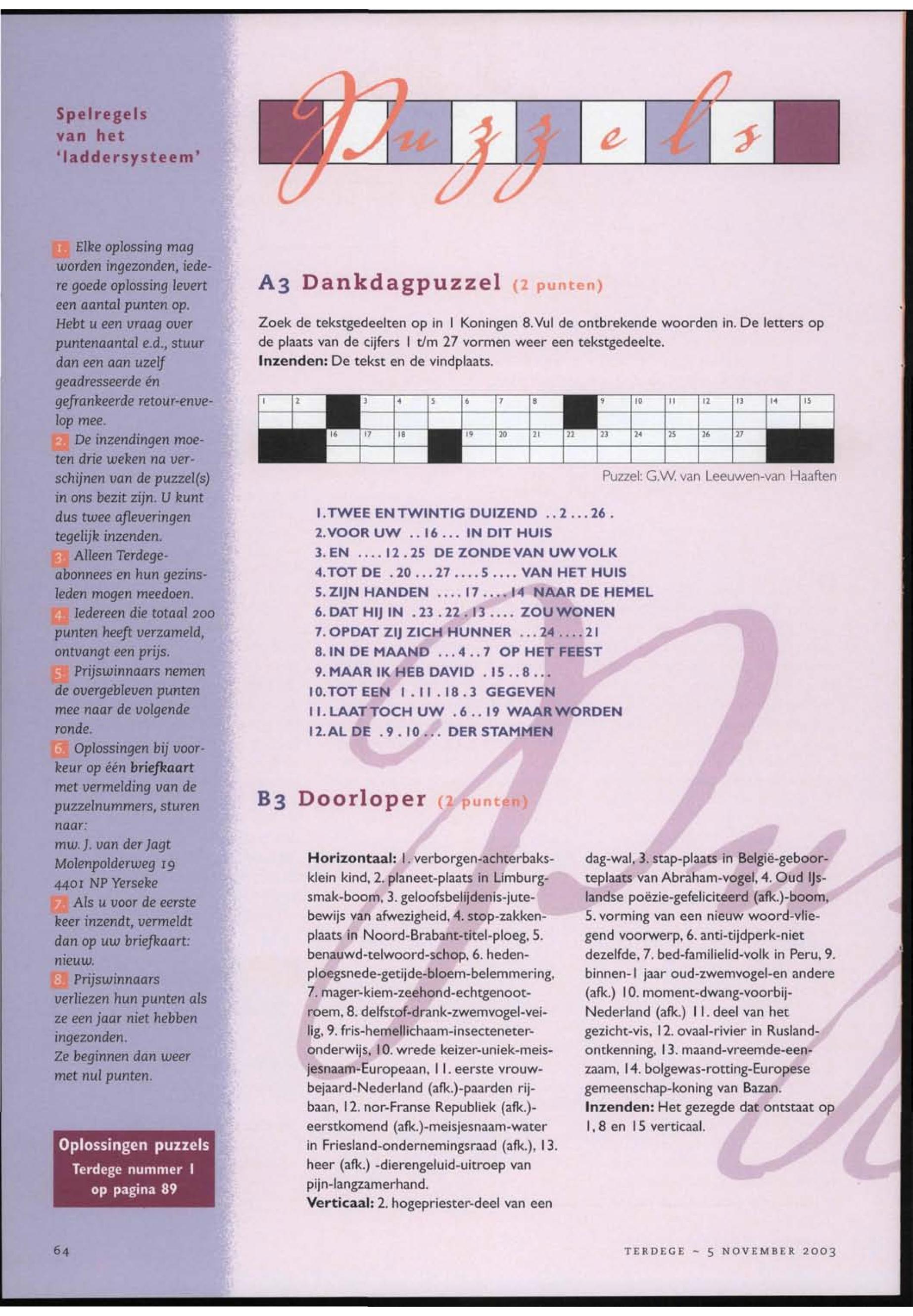 05/11/2003, Reguliere Editie