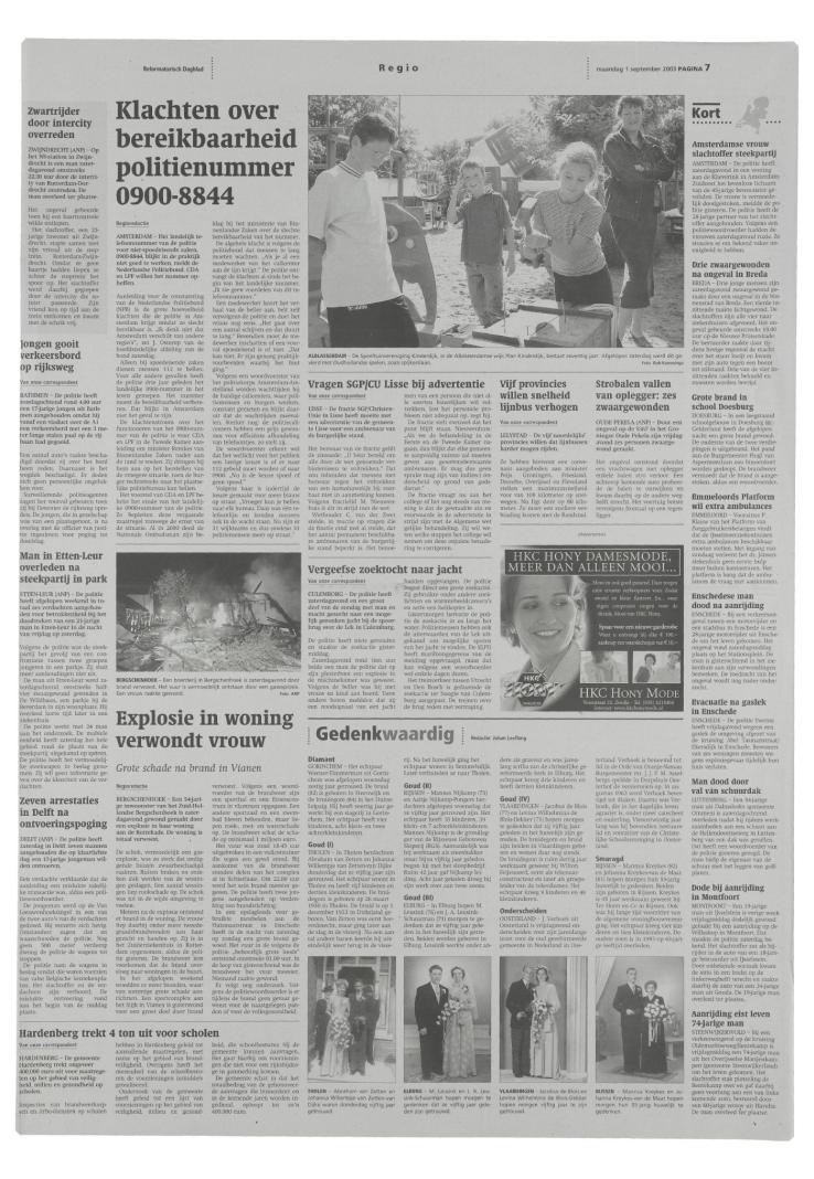 01/09/2003, Katern Nieuws