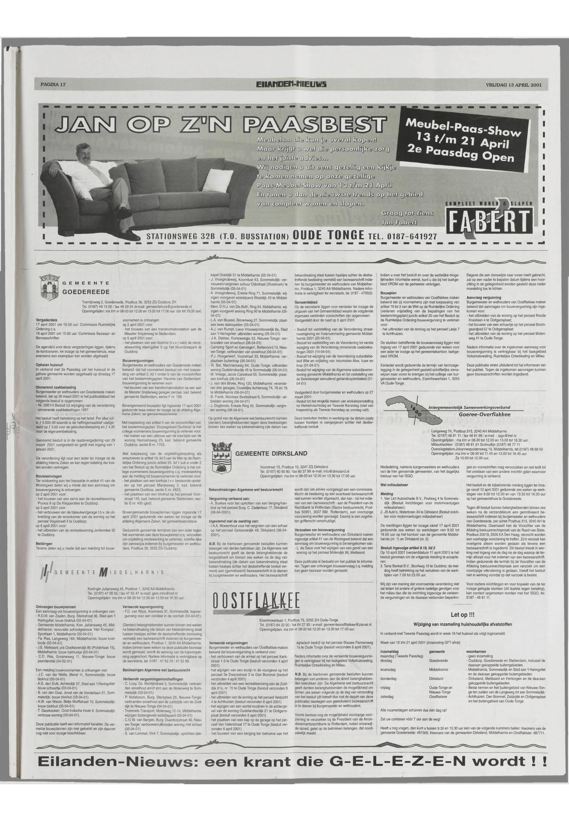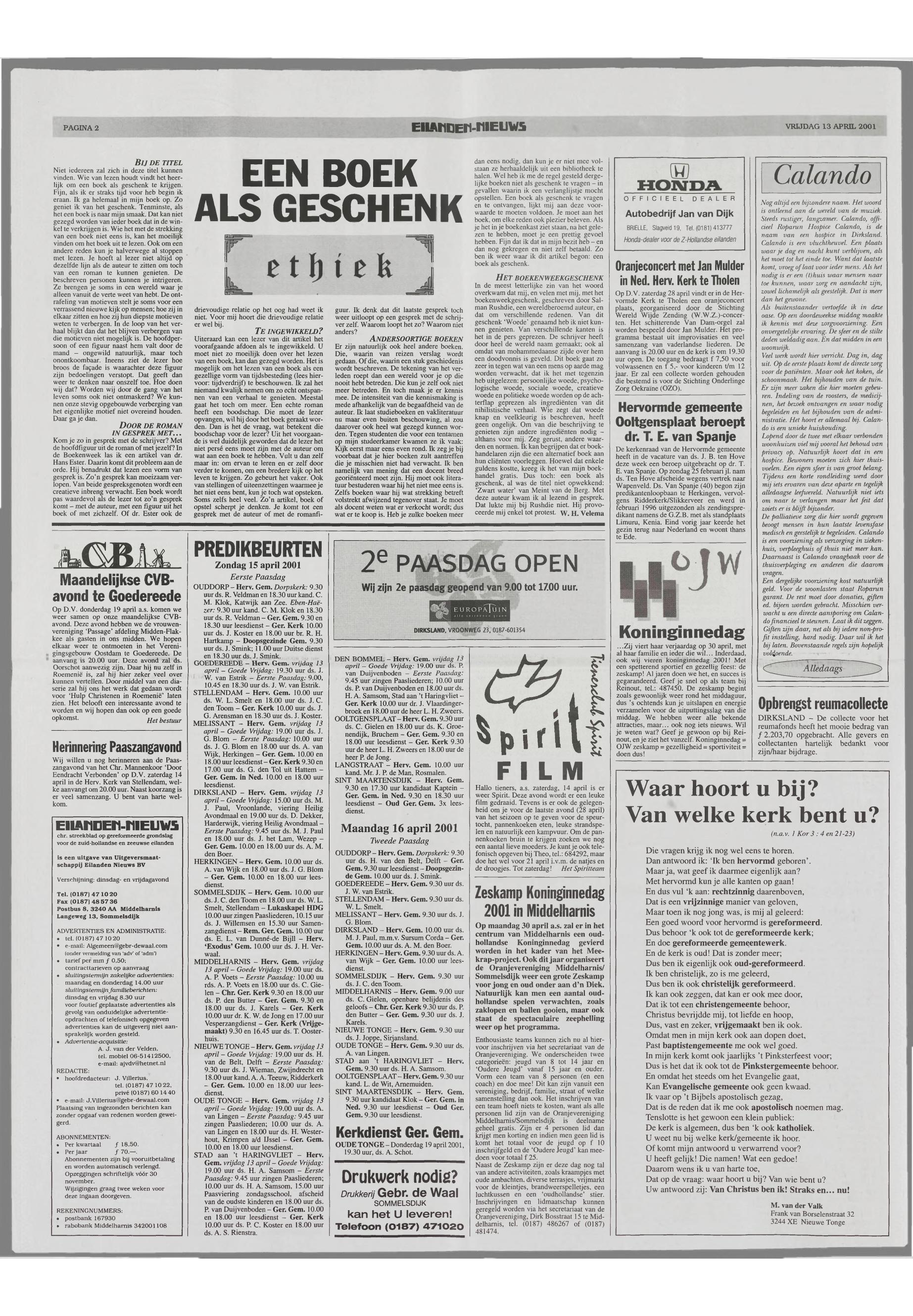 13/04/2001, Reguliere editie