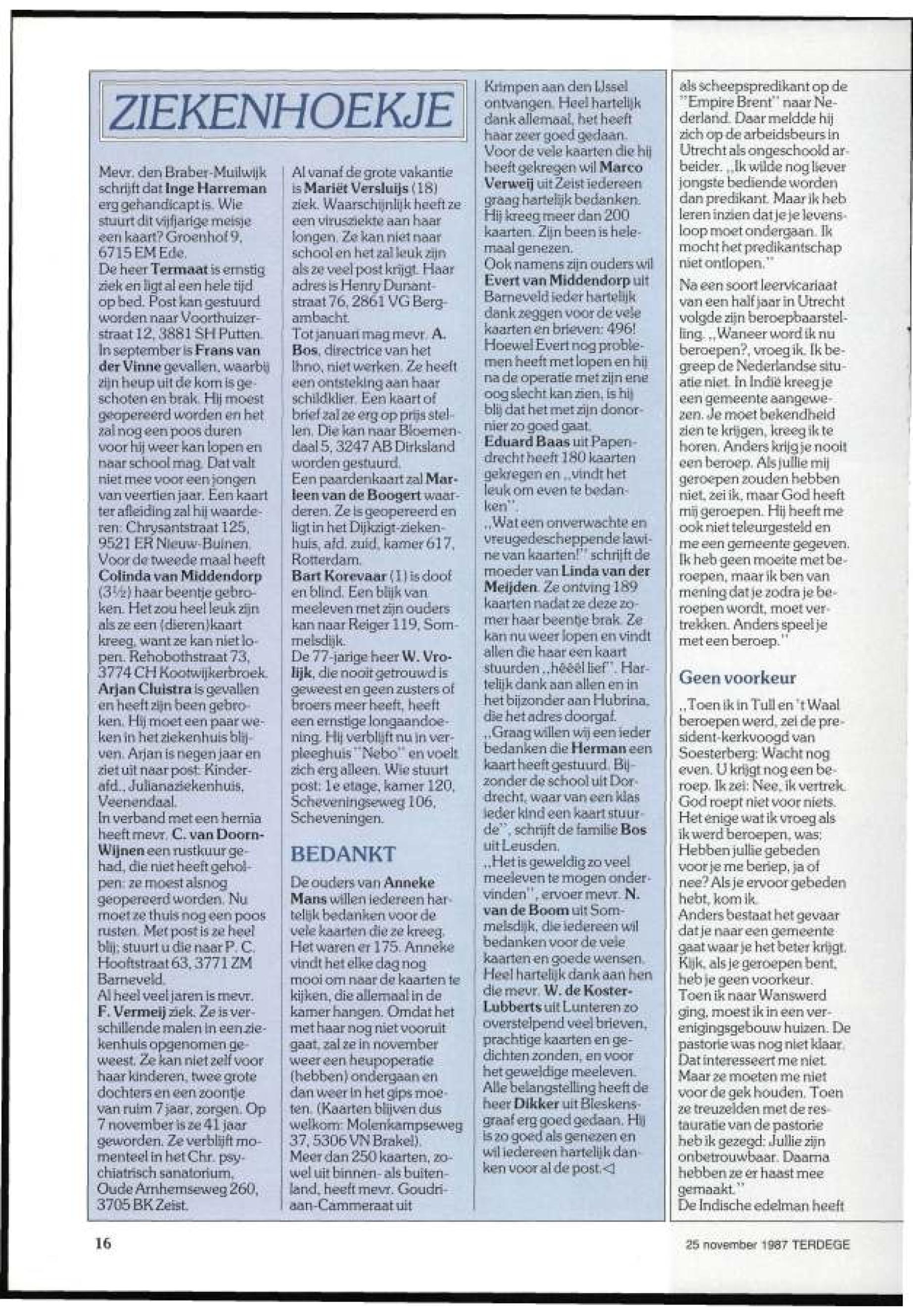 25/11/1987, Reguliere Editie