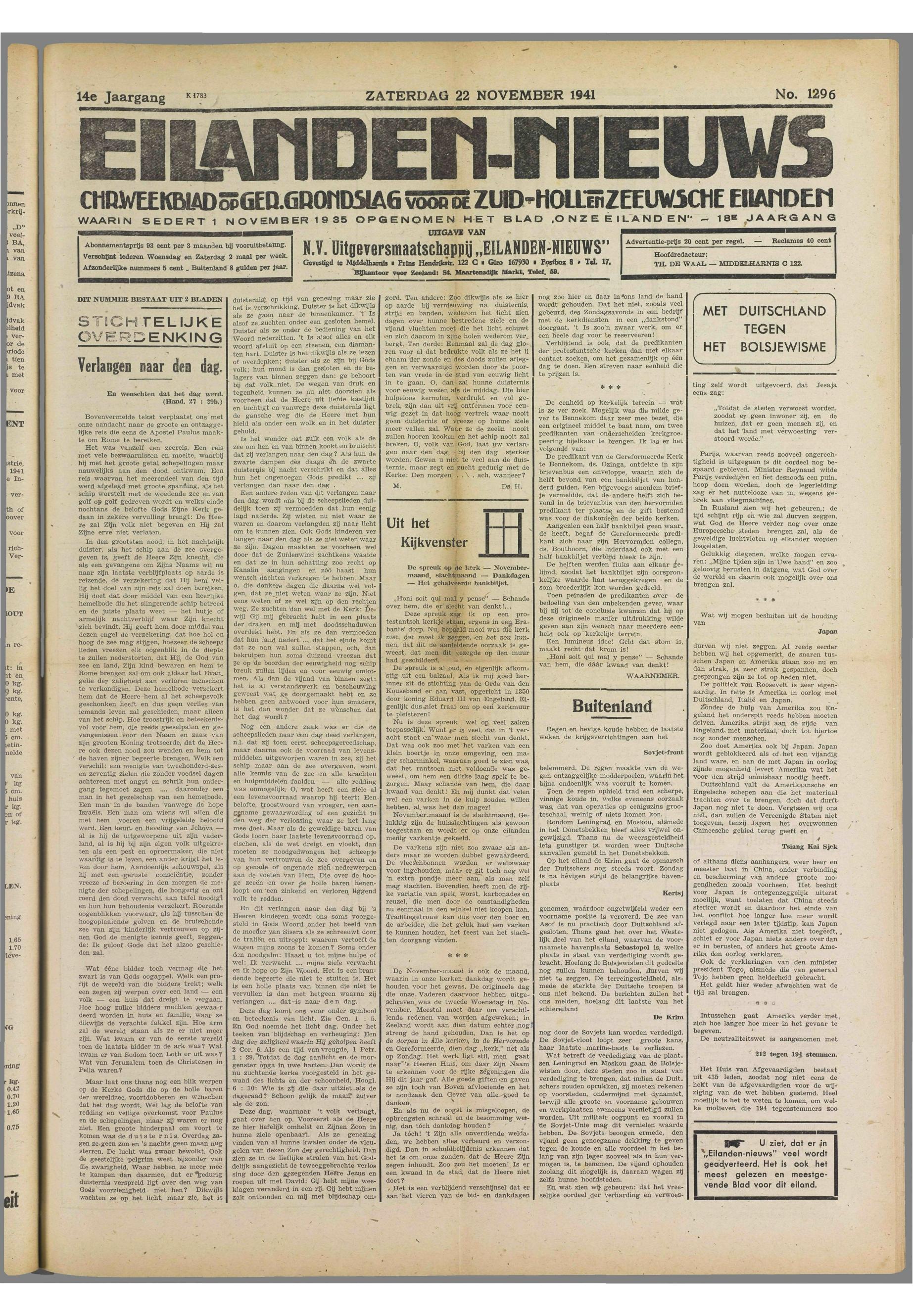 22/11/1941, Reguliere editie