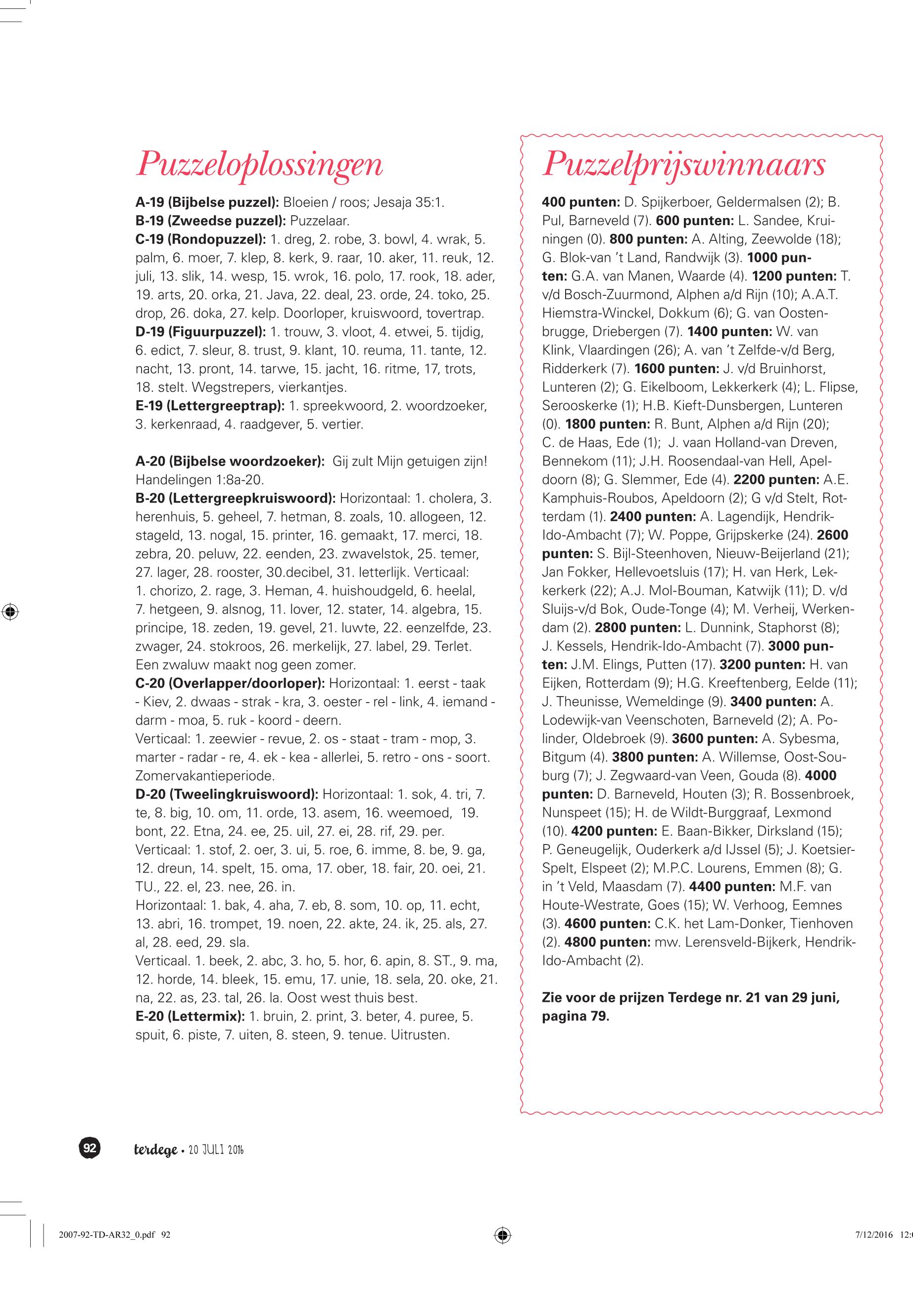 20/07/2016, Reguliere Editie