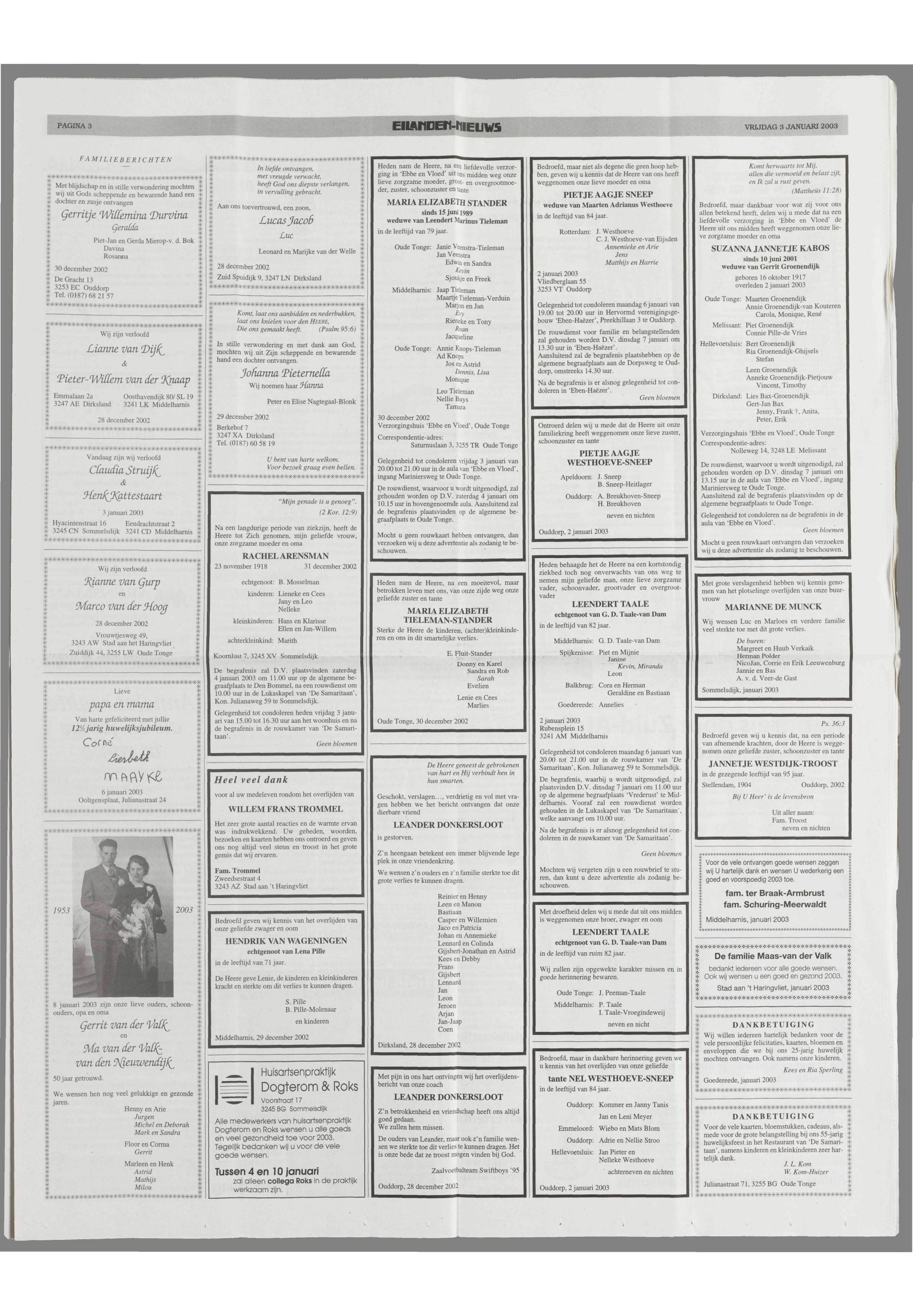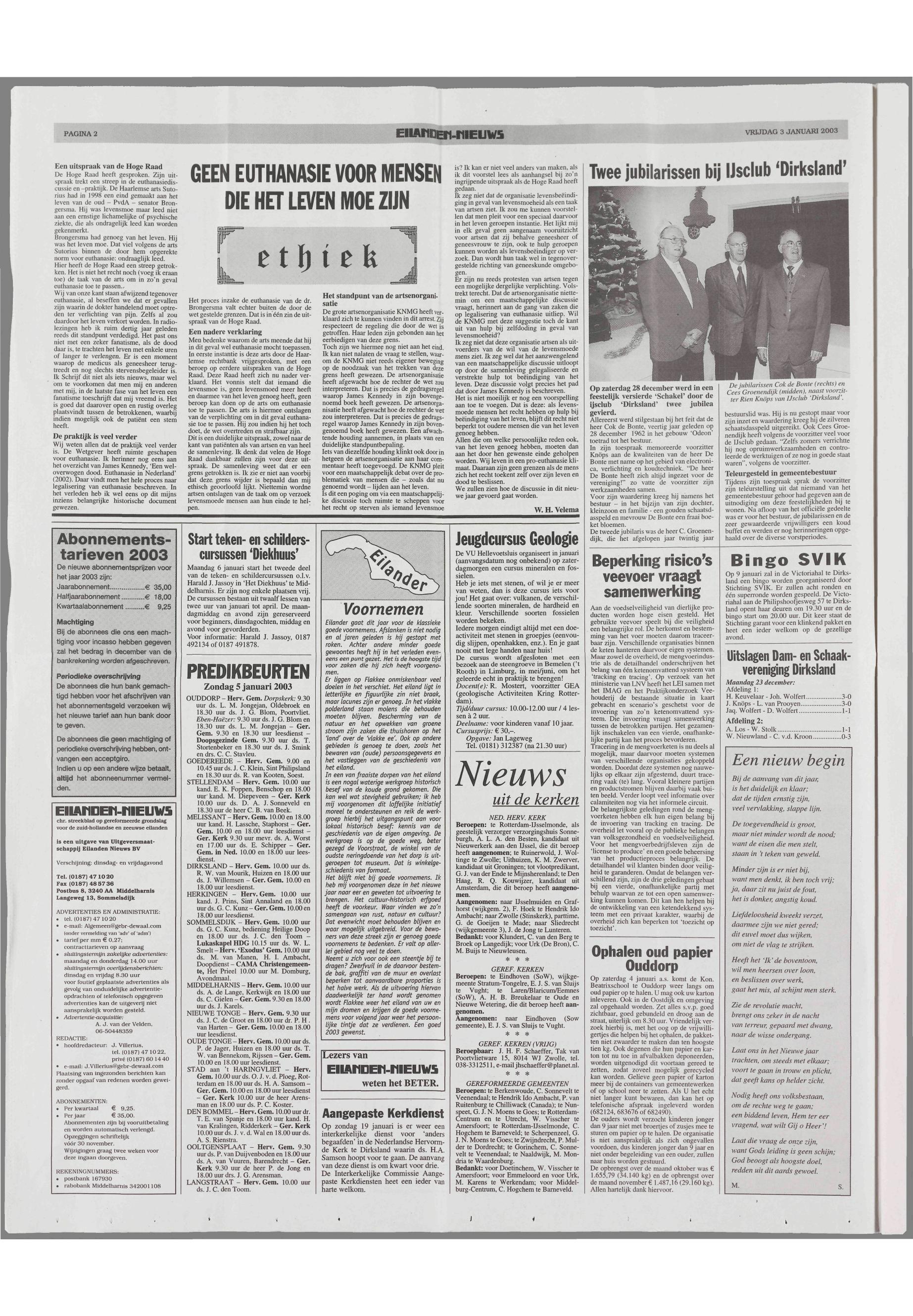 03/01/2003, Reguliere editie