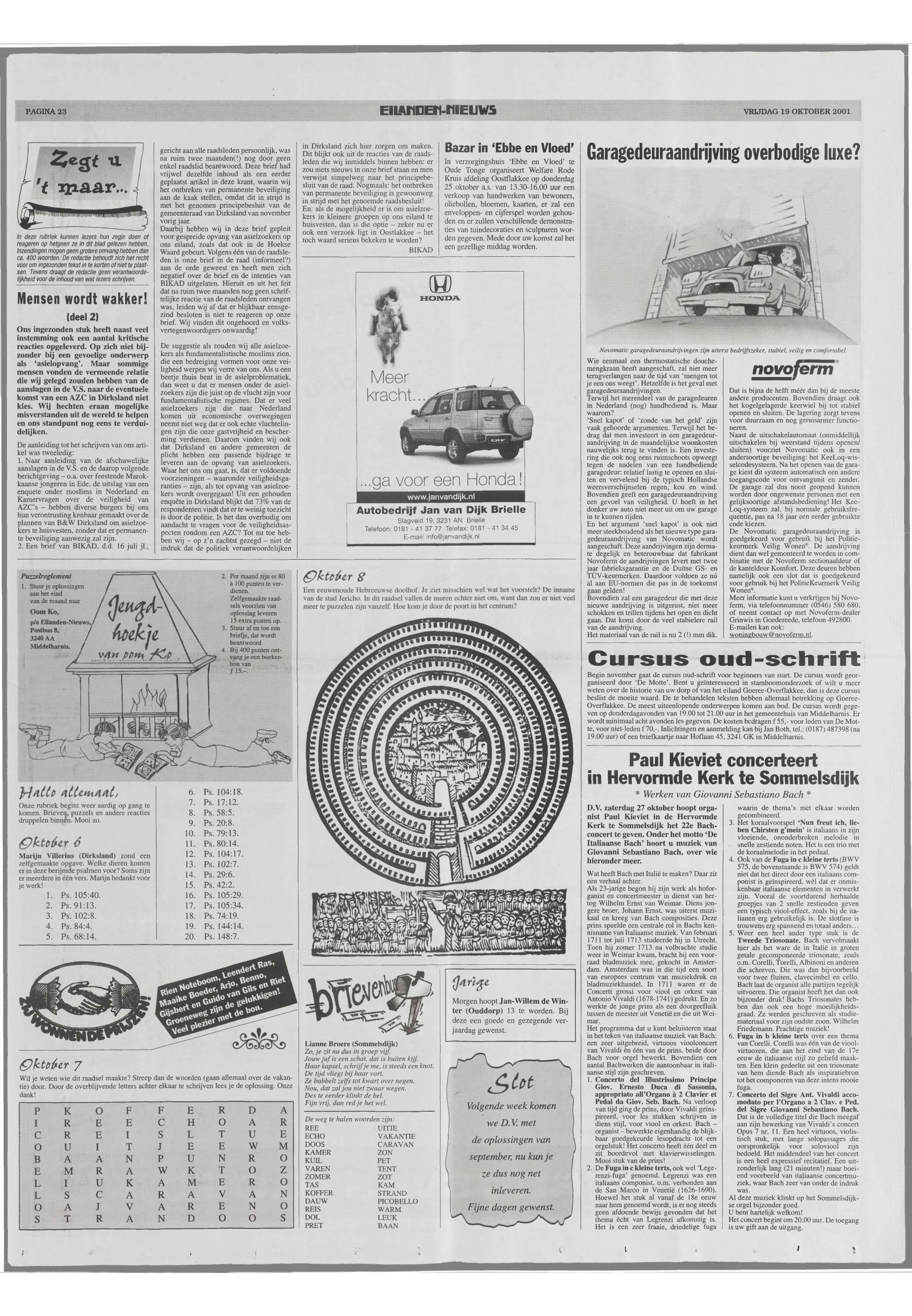 19/10/2001, Reguliere editie