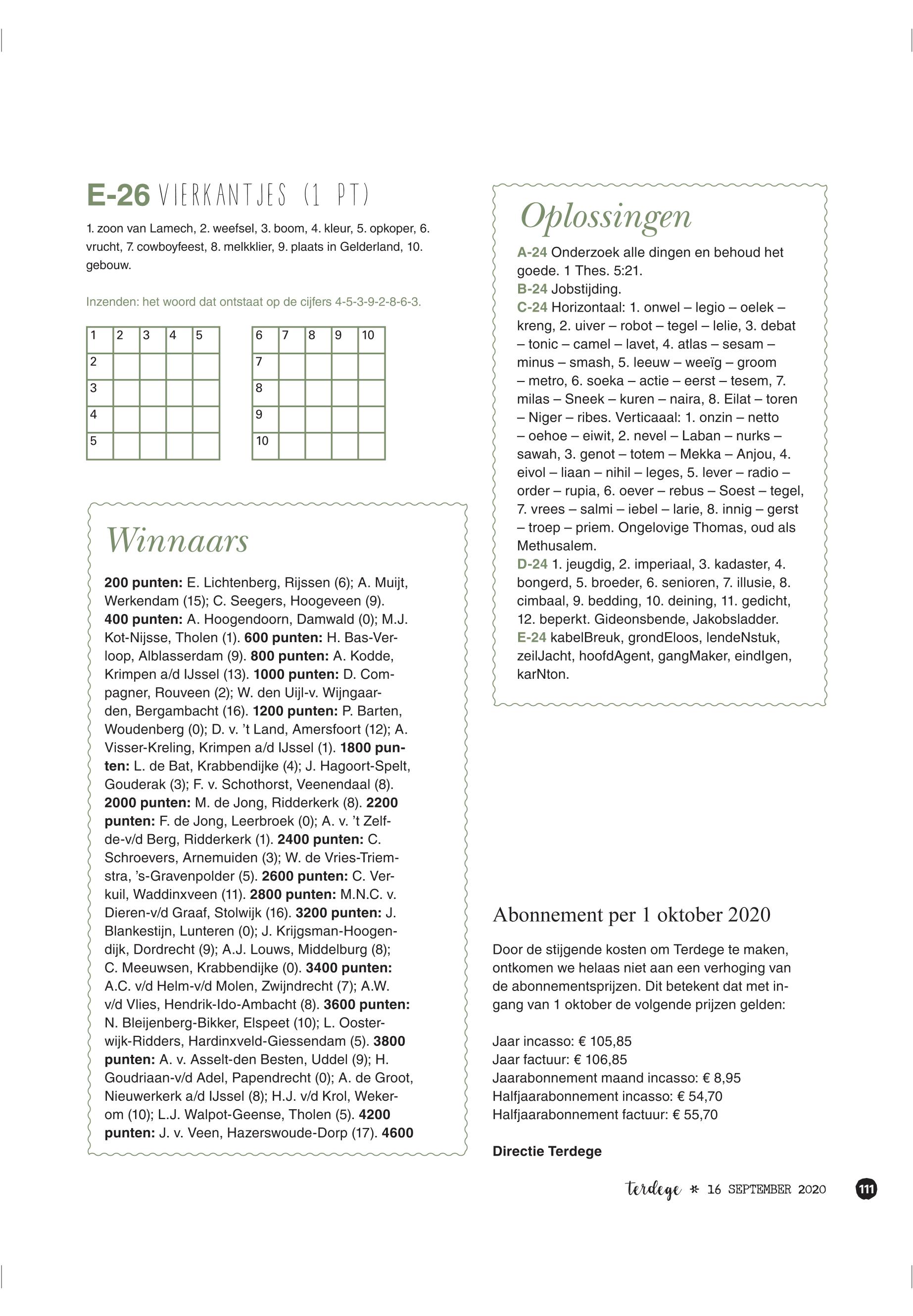 16/09/2020, Reguliere editie