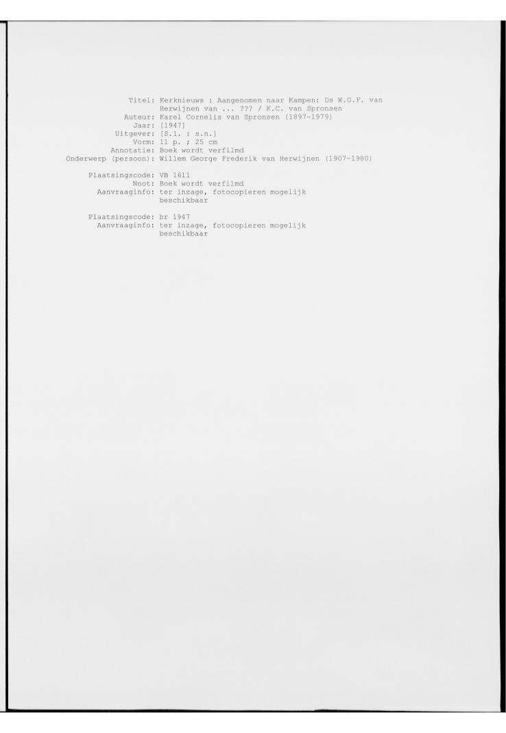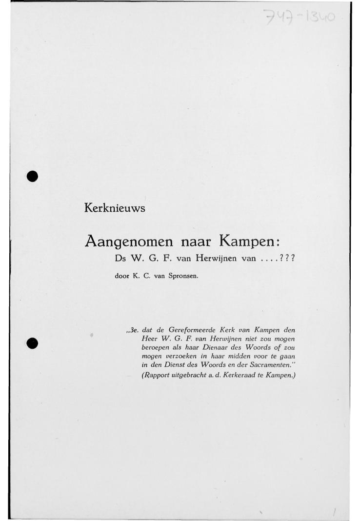 Kerknieuws. Aangenomen naar Kampen: Ds. W.G.F. van Herwijnen van ….???
