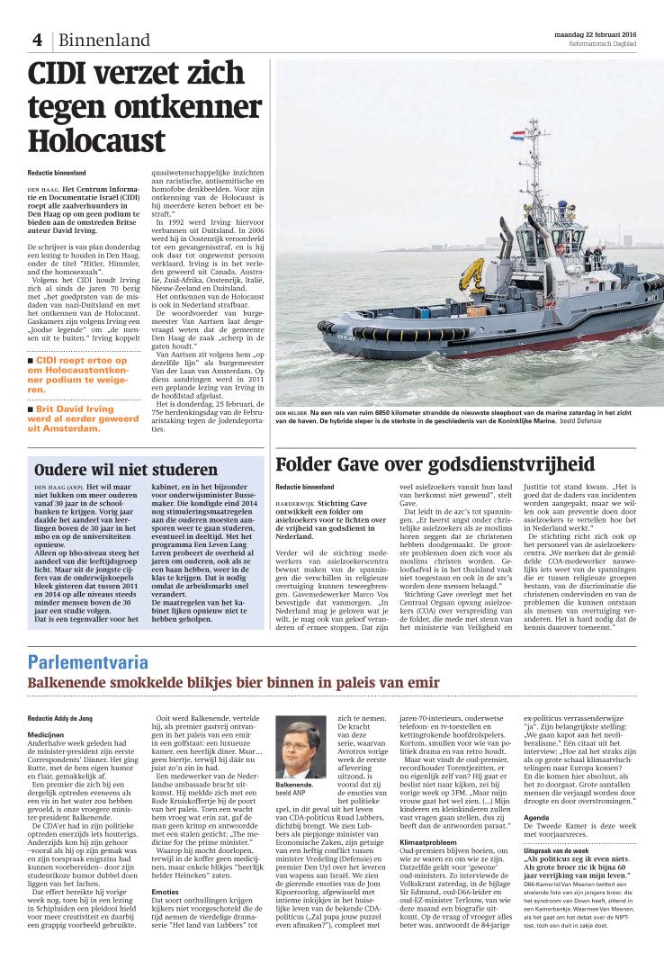22/02/2016, Katern Nieuws