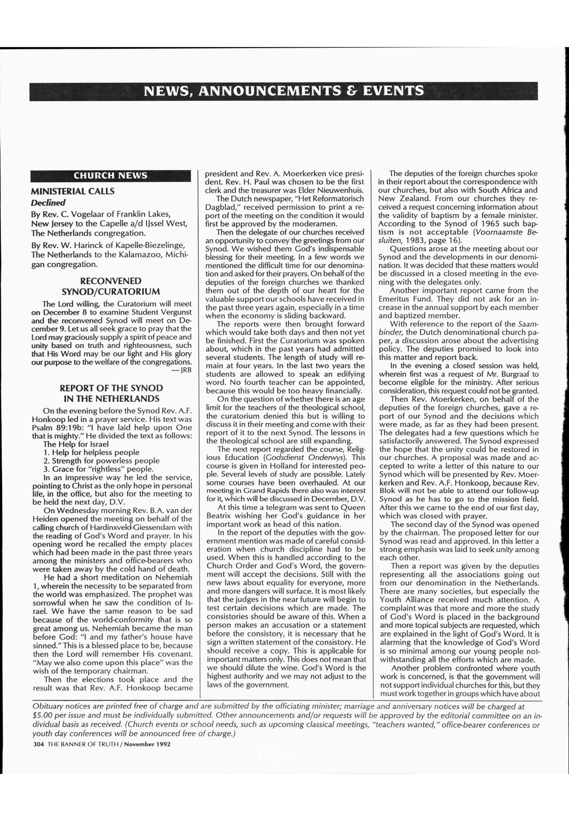 01/11/1992, Reguliere Editie
