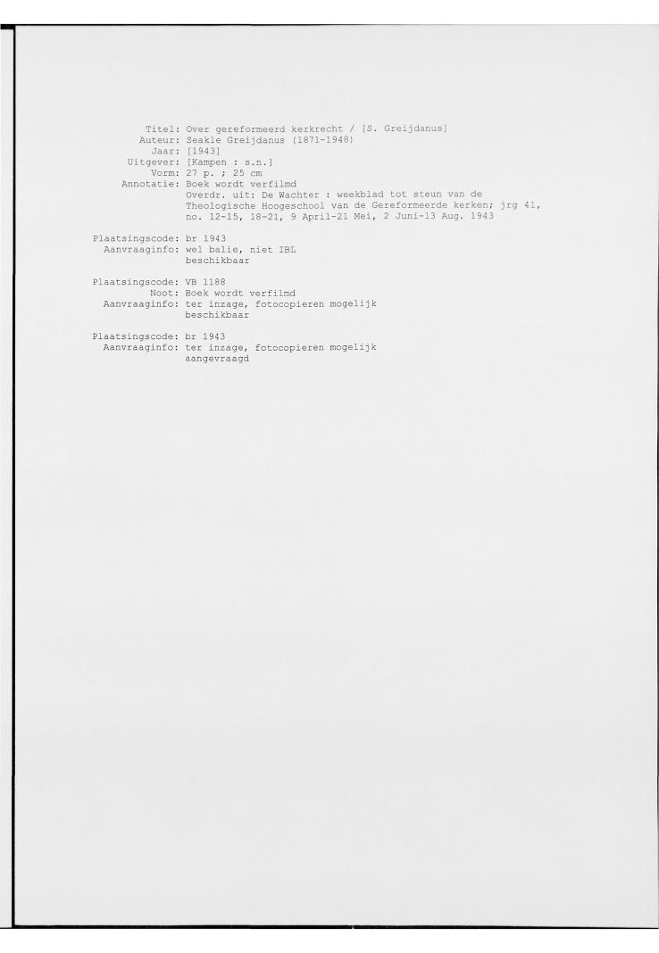 Over gereformeerd kerkrecht