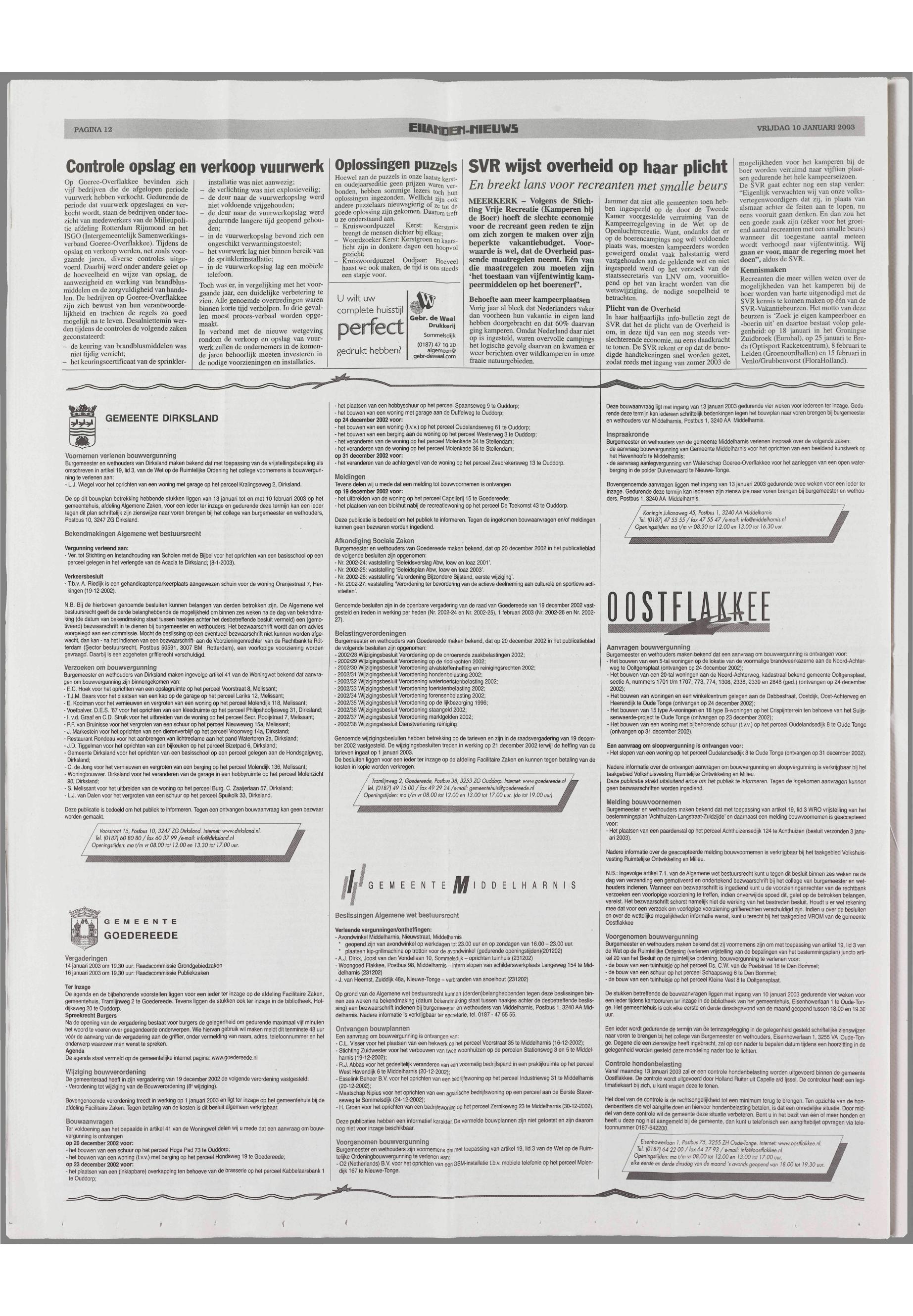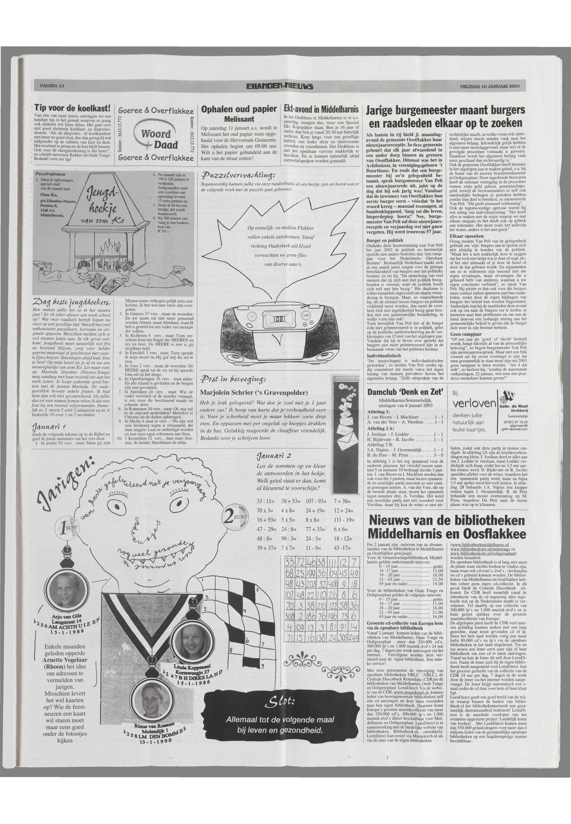 10/01/2003, Reguliere editie