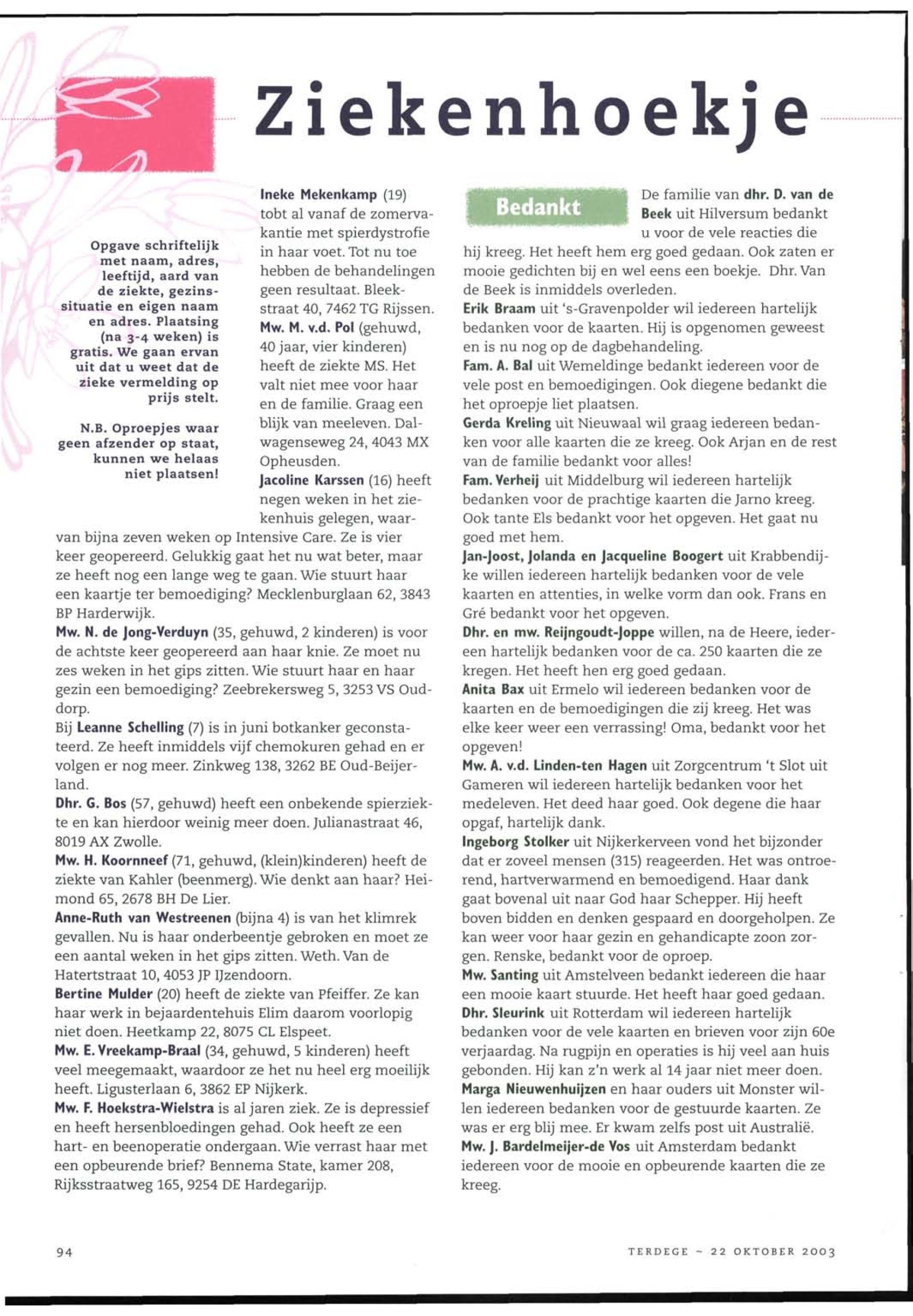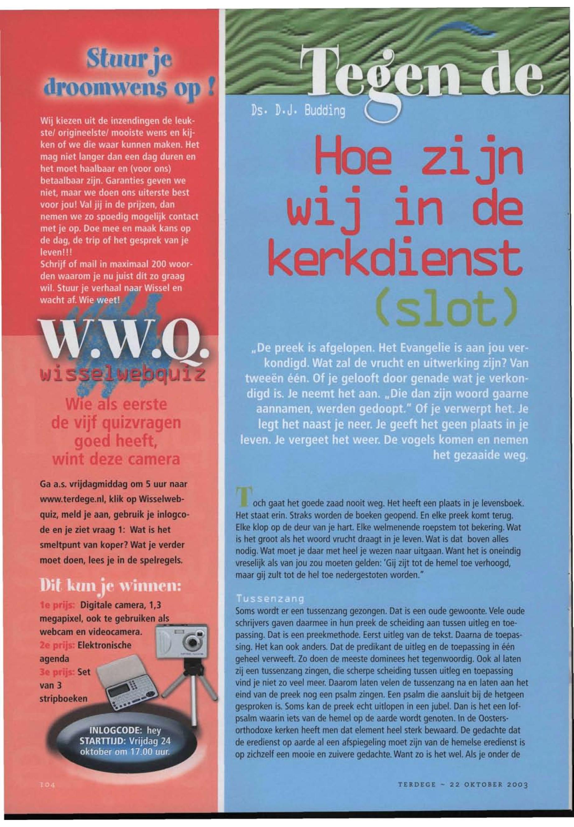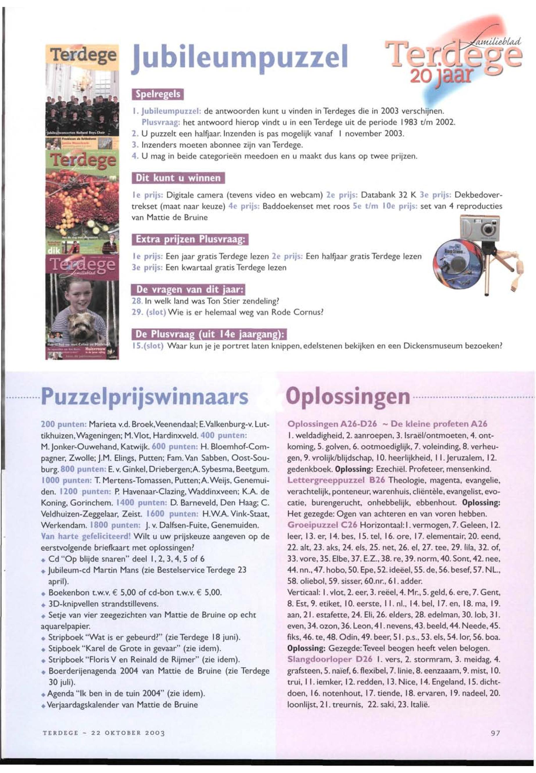 22/10/2003, Reguliere Editie