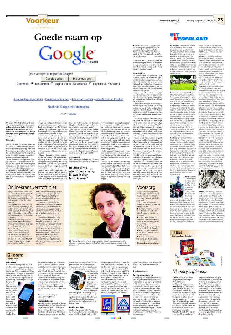 01/08/2009, Katern Nieuws