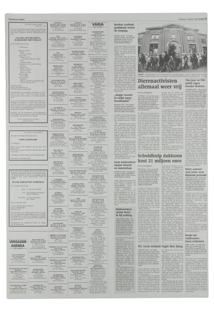 11/10/2003, Katern Nieuws