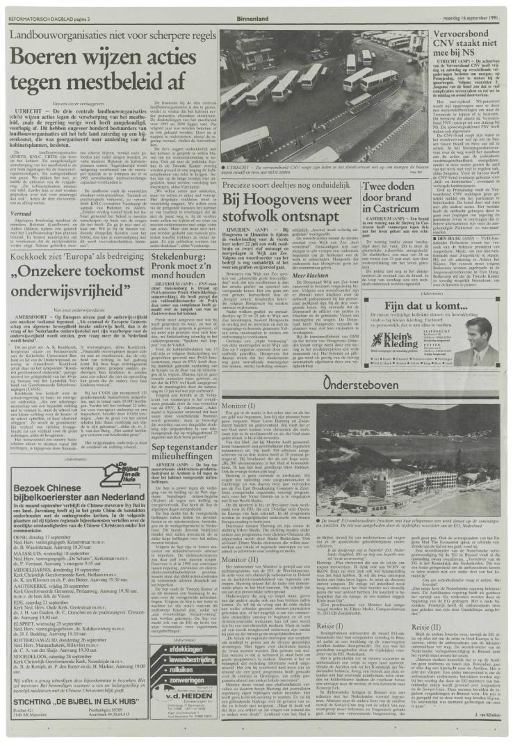 16/09/1991, Katern Nieuws