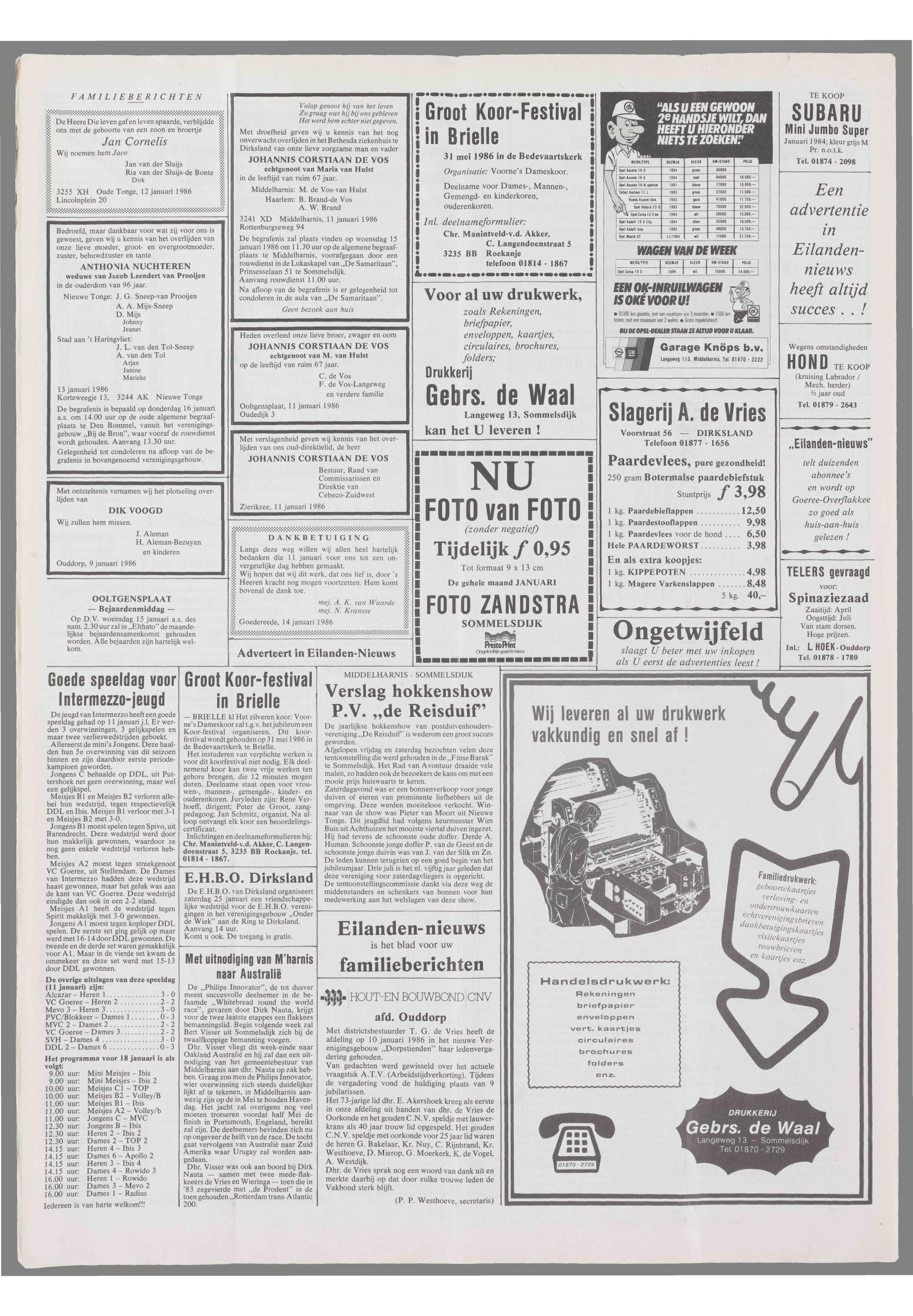 14/01/1986, Reguliere editie