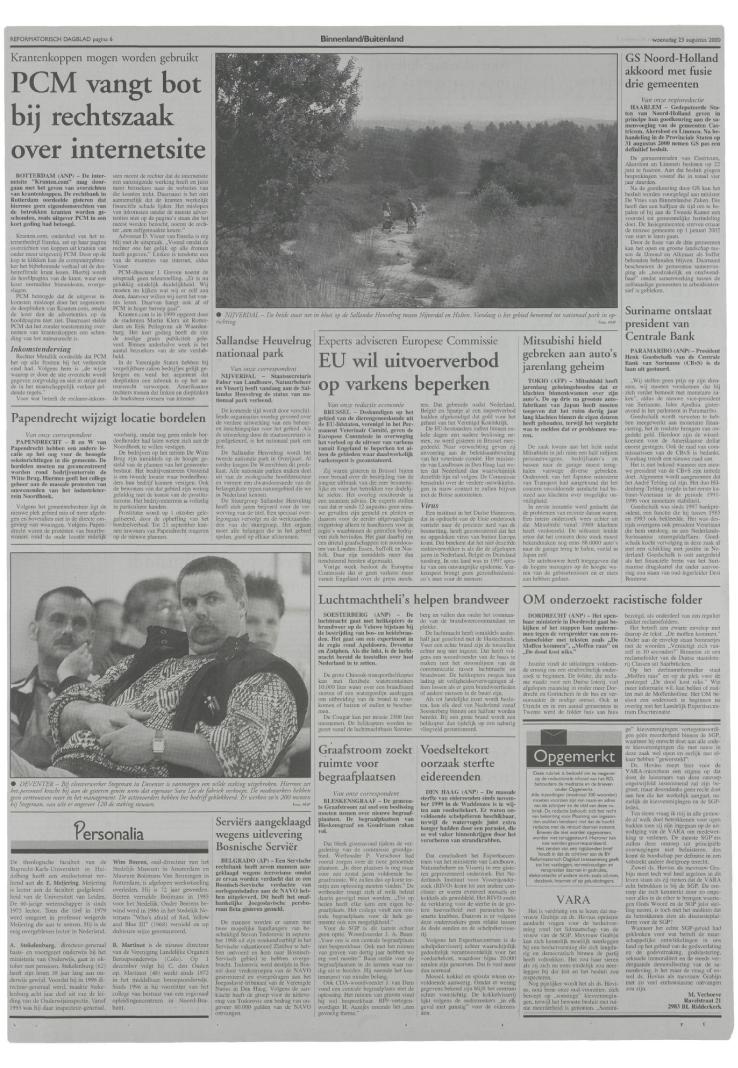 23/08/2000, Katern Nieuws