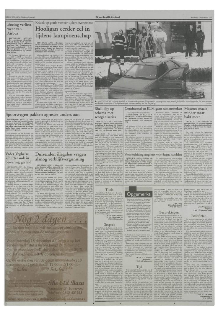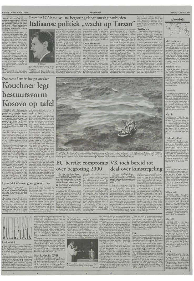 16/12/1999, Katern Nieuws