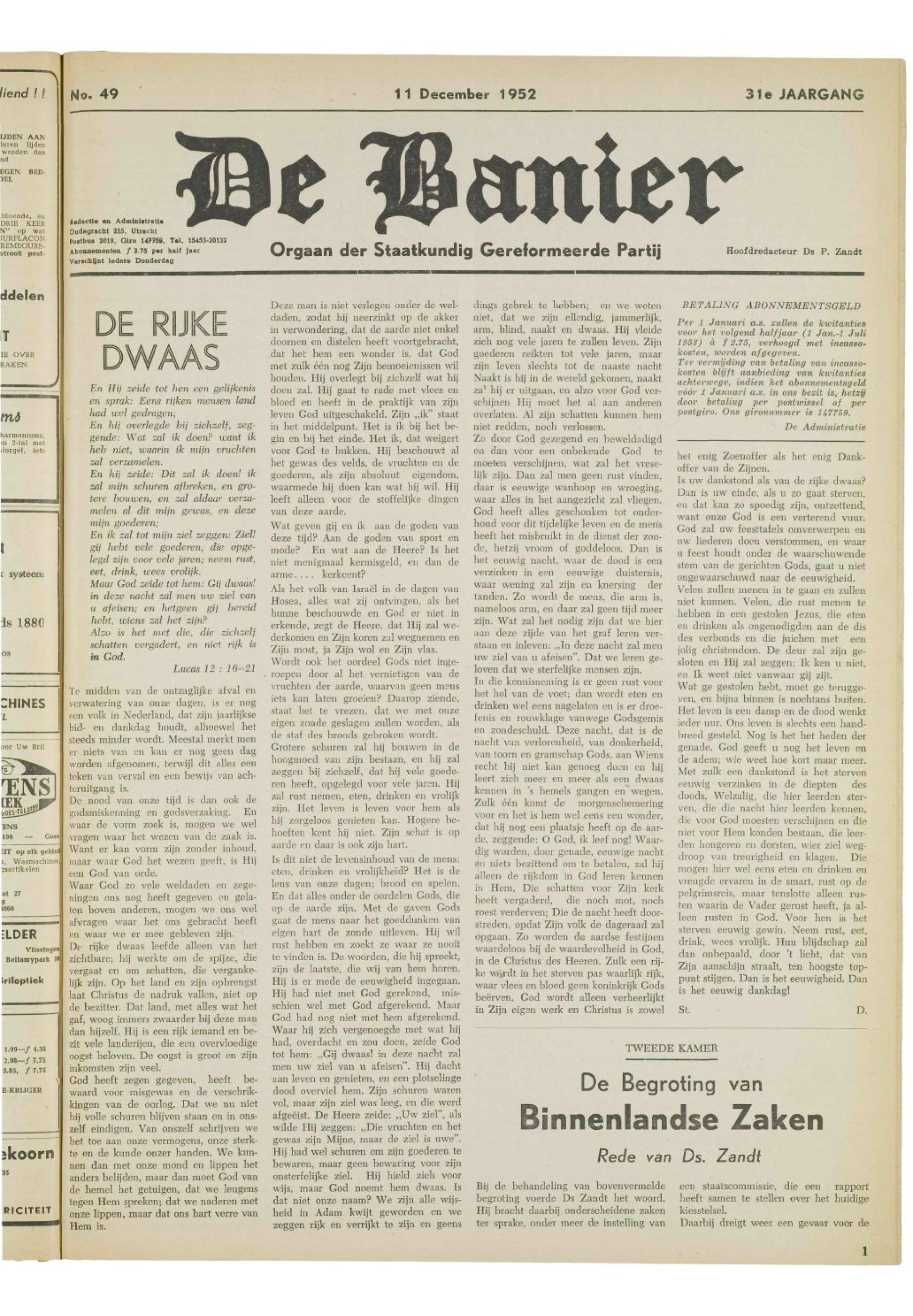 11/12/1952, Reguliere Editie