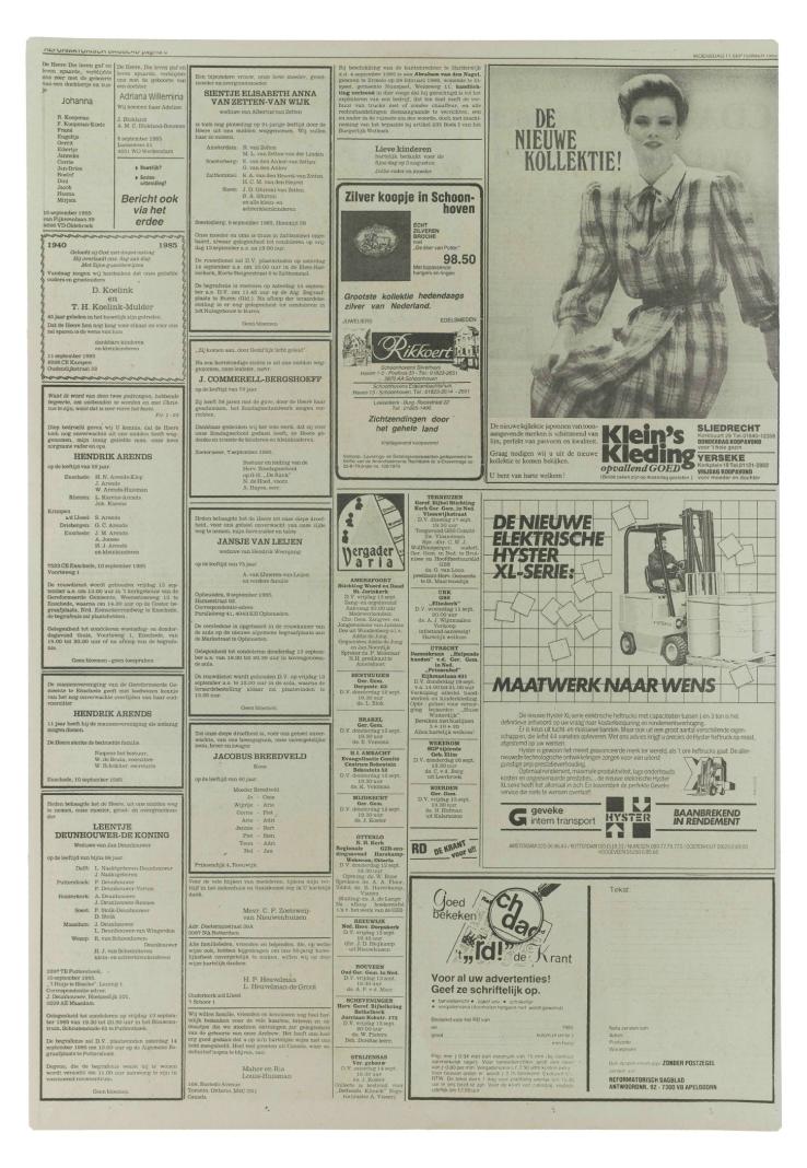 11/09/1985, Katern Nieuws