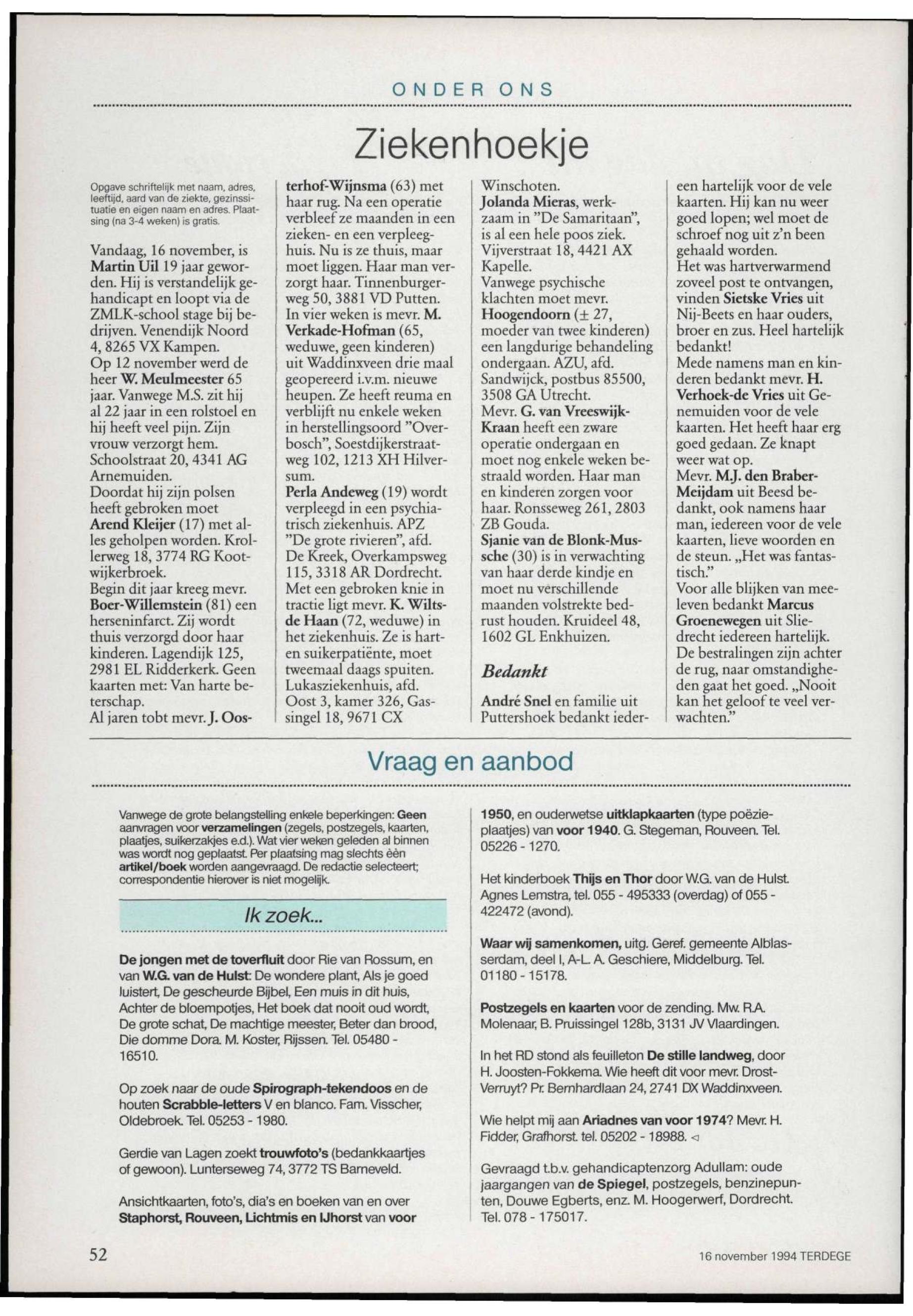 16/11/1994, Reguliere Editie